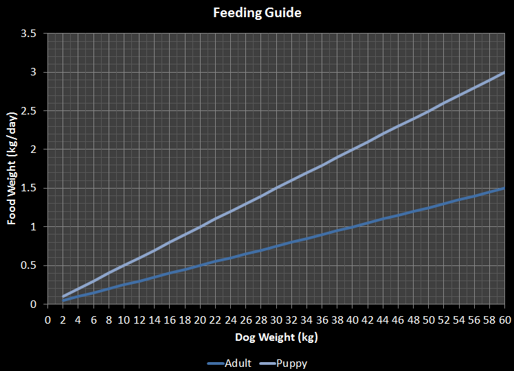 The table below can be used as a guide for the average feed quantity for the weight of your dog/puppy.